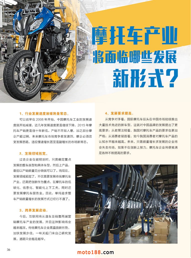 從下半年開始,開設外貿專題。今年內銷市場疲軟,然而廣州幾大市場在外貿出口業務上,除了價格下滑之外,出口量并沒有明顯的下降,廣州羅沖圍一帶市場以白云市場為龍頭,一批年輕經銷商們朝氣蓬勃的活躍在外貿市場上,他們更注重品牌化,拒絕假冒;他們立足于傳統行業,又運用互聯網技術,將摩托車配件貿易逐步向電子商務化進軍;為了拓展國外市場,他們摒棄門戶之見,抱團出海,除了組織地方商會,又將地方商會聯合起來,組成對外貿易的航母;他們使出各種解數,一時間風生水起,給行業帶來了勃勃生機,他們立足于當下,卻志在未來,正逐步引領行業向新的目標前進,為此我們做了一個專題的報道《長風破浪會有時,直掛云帆濟滄海》,由于這期雜志時間緊迫,以及版面的限制,請見下一期雜志。本期雜志用了四頁紙報道了這樣一個新成立的團隊,他們為行業帶來變革,帶入新的氣象。正是因為我們有一代具有國際化視野的摩配商人,也是我們行業希望所在,未來所在。