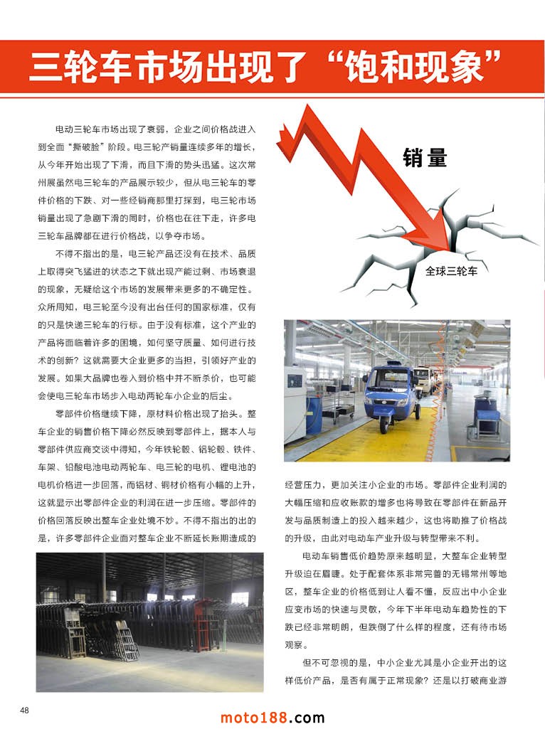 從下半年開始,開設外貿專題。今年內銷市場疲軟,然而廣州幾大市場在外貿出口業務上,除了價格下滑之外,出口量并沒有明顯的下降,廣州羅沖圍一帶市場以白云市場為龍頭,一批年輕經銷商們朝氣蓬勃的活躍在外貿市場上,他們更注重品牌化,拒絕假冒;他們立足于傳統行業,又運用互聯網技術,將摩托車配件貿易逐步向電子商務化進軍;為了拓展國外市場,他們摒棄門戶之見,抱團出海,除了組織地方商會,又將地方商會聯合起來,組成對外貿易的航母;他們使出各種解數,一時間風生水起,給行業帶來了勃勃生機,他們立足于當下,卻志在未來,正逐步引領行業向新的目標前進,為此我們做了一個專題的報道《長風破浪會有時,直掛云帆濟滄海》,由于這期雜志時間緊迫,以及版面的限制,請見下一期雜志。本期雜志用了四頁紙報道了這樣一個新成立的團隊,他們為行業帶來變革,帶入新的氣象。正是因為我們有一代具有國際化視野的摩配商人,也是我們行業希望所在,未來所在。