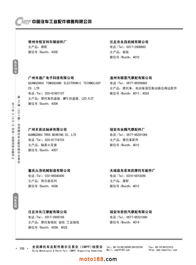 第36屆秋季(廣州)全國摩托車及配件展示交易會(huì)參展企業(yè)名錄
