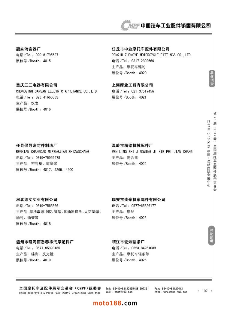 第36屆秋季(廣州)全國摩托車及配件展示交易會參展企業名錄