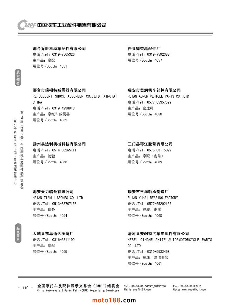第36屆秋季(廣州)全國摩托車及配件展示交易會參展企業名錄