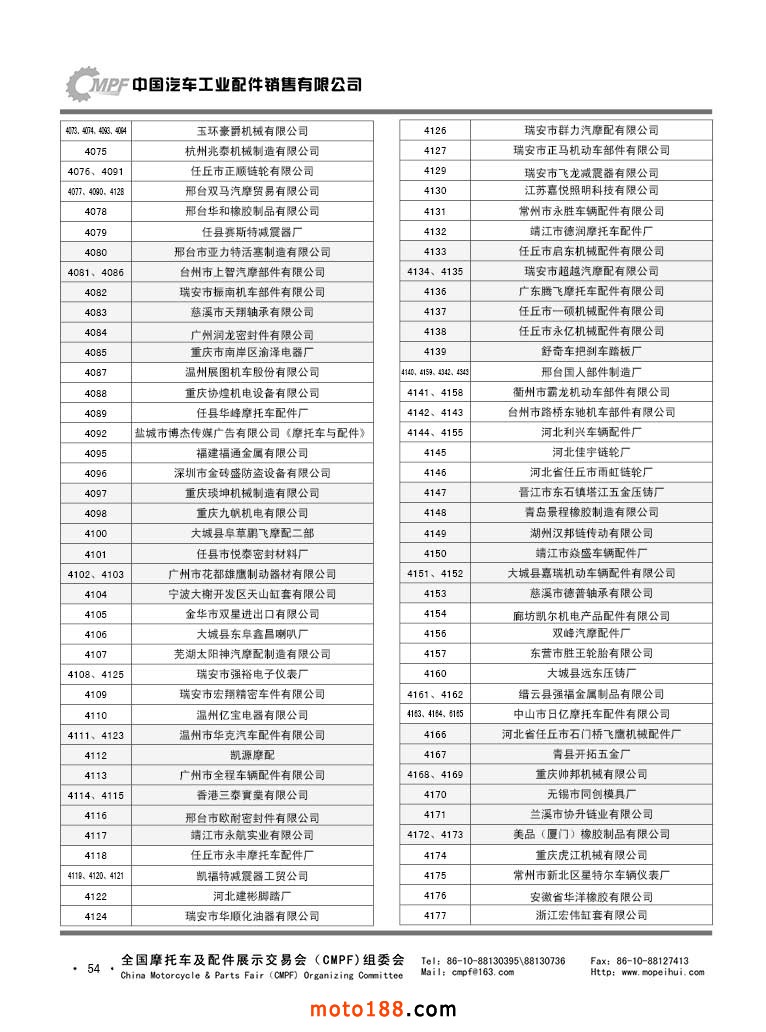 第36屆秋季(廣州)全國摩托車及配件展示交易會參展單位名錄