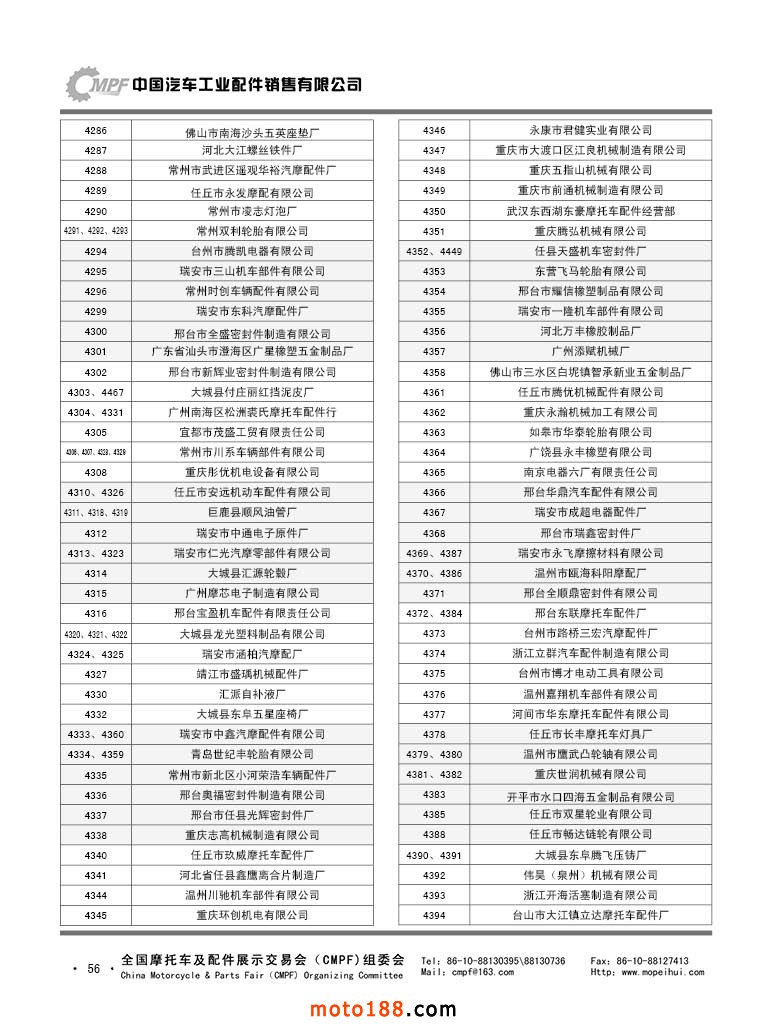 第36屆秋季(廣州)全國摩托車及配件展示交易會參展單位名錄