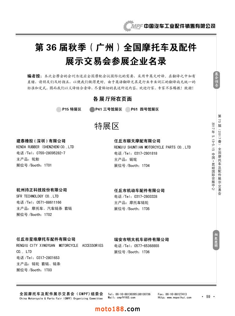 第36屆秋季(廣州)全國摩托車及配件展示交易會參展企業名錄