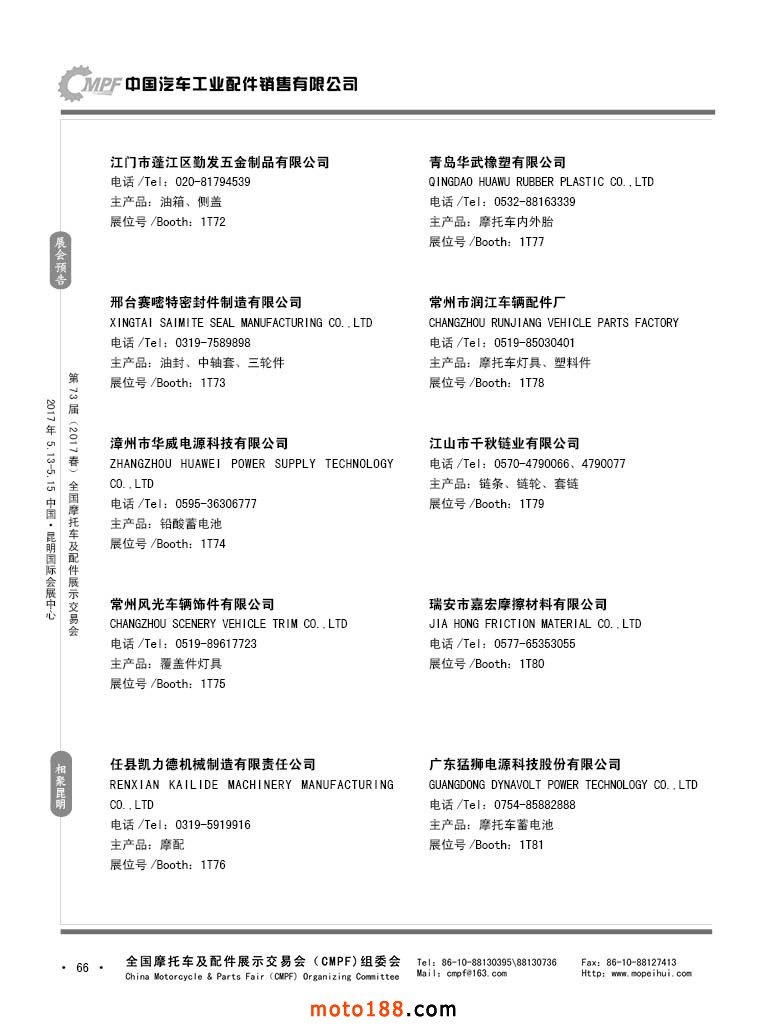 第36屆秋季(廣州)全國(guó)摩托車(chē)及配件展示交易會(huì)參展企業(yè)名錄