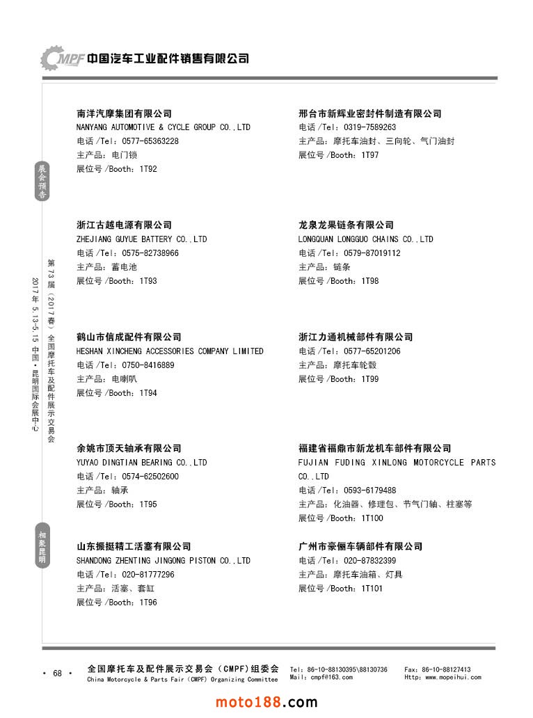 第36屆秋季(廣州)全國摩托車及配件展示交易會參展企業名錄