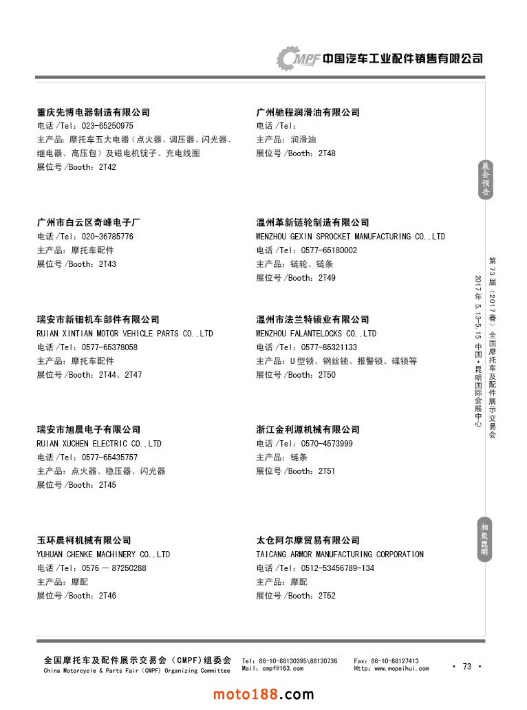 第36屆秋季(廣州)全國摩托車及配件展示交易會參展企業名錄