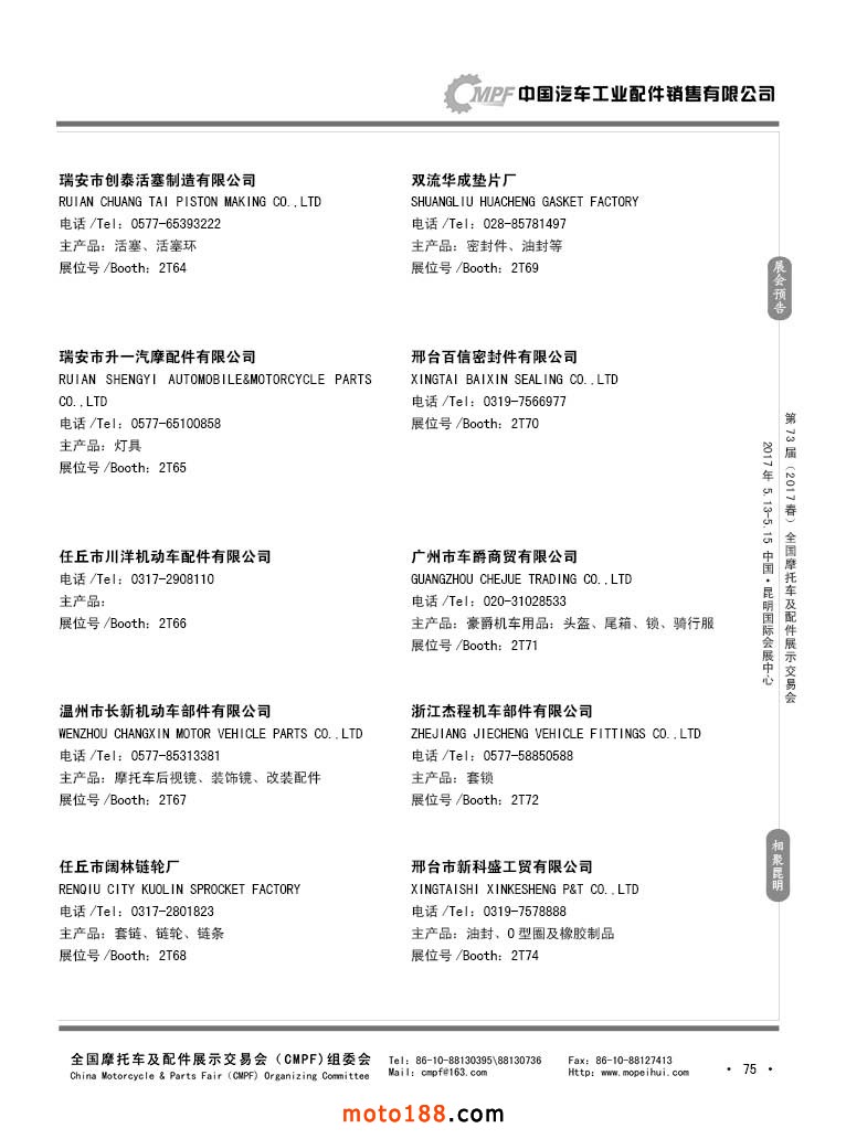 第36屆秋季(廣州)全國摩托車及配件展示交易會參展企業名錄
