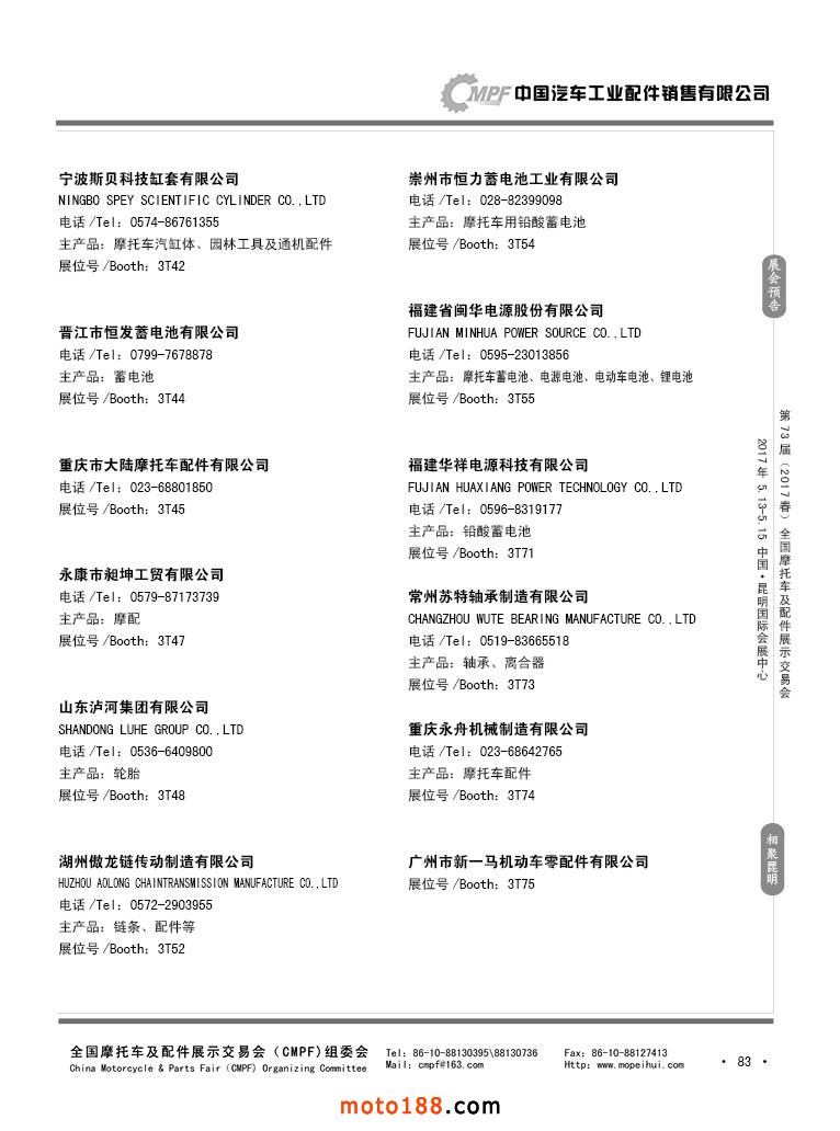 第36屆秋季(廣州)全國摩托車及配件展示交易會參展企業名錄