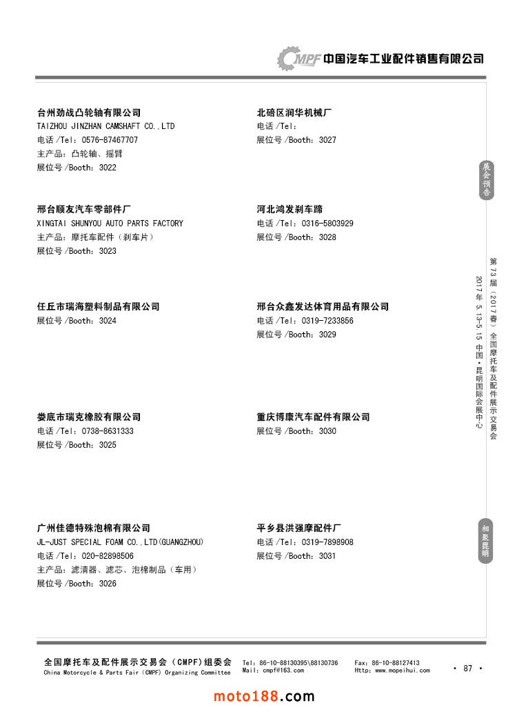 第36屆秋季(廣州)全國摩托車及配件展示交易會參展企業(yè)名錄