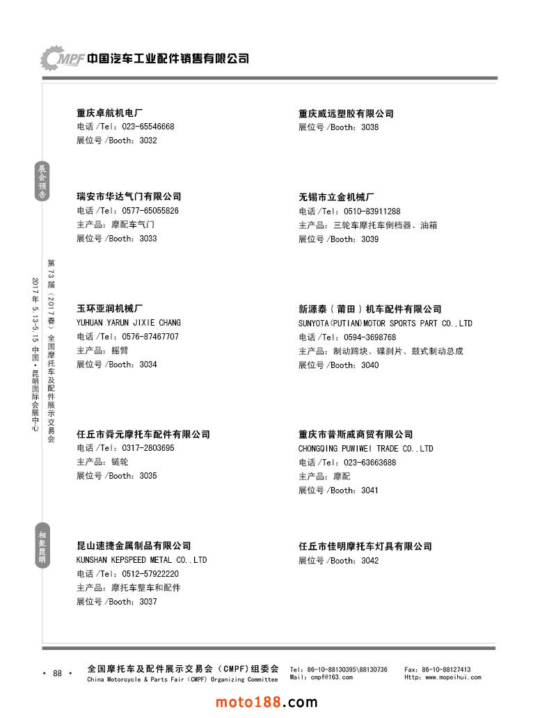 第36屆秋季(廣州)全國摩托車及配件展示交易會參展企業名錄