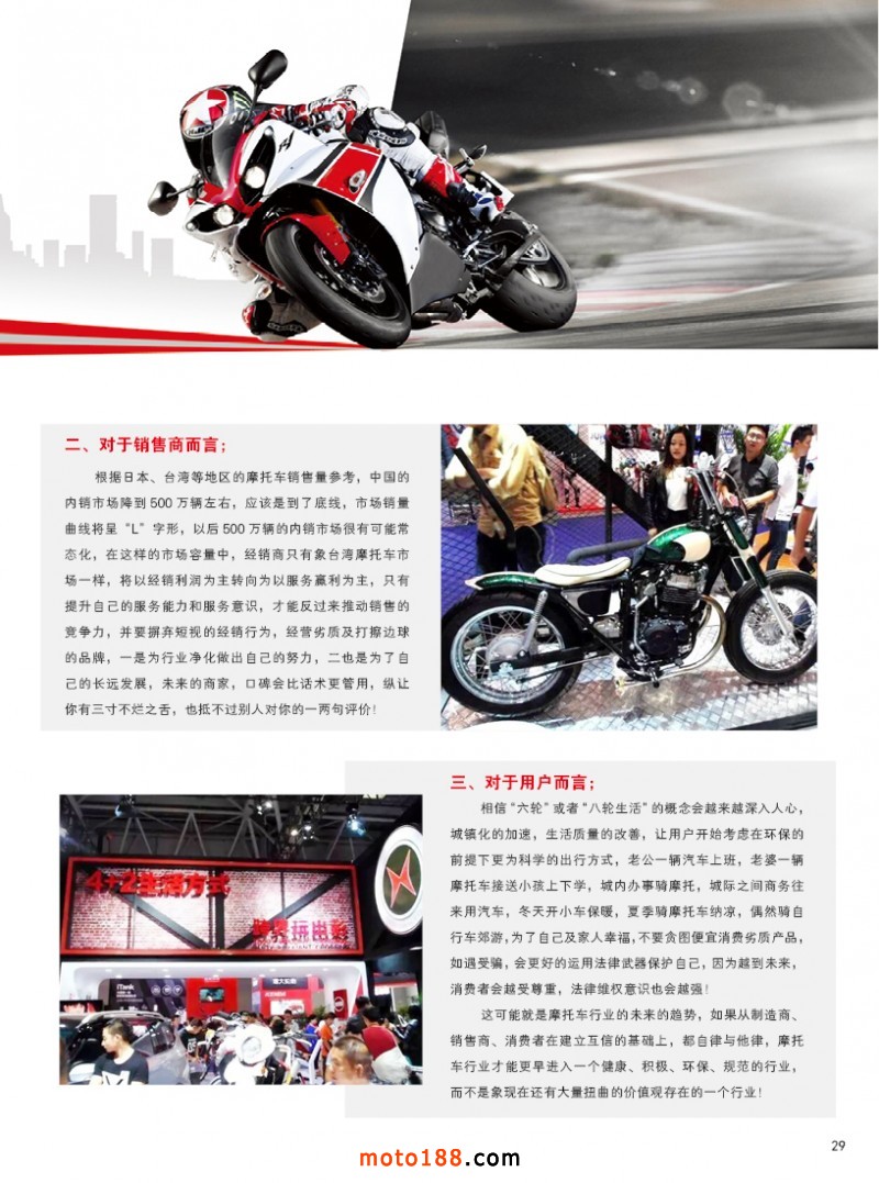 今年第73屆全國摩托車及配件展示交易會(huì)將在昆明召開,目前我們正在為會(huì)議進(jìn)行緊張的忙碌中。今年在會(huì)議上我們提供的資料是《西南地區(qū)市場指南》《會(huì)刊》《摩托車與配件》第五期雜志,歡迎大家到6130展位來領(lǐng)取。
