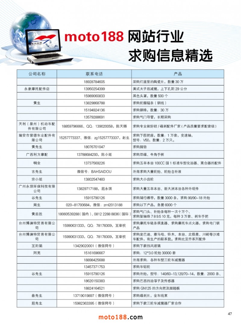 今年第73屆全國摩托車及配件展示交易會將在昆明召開,目前我們正在為會議進行緊張的忙碌中。今年在會議上我們提供的資料是《西南地區市場指南》《會刊》《摩托車與配件》第五期雜志,歡迎大家到6130展位來領取。