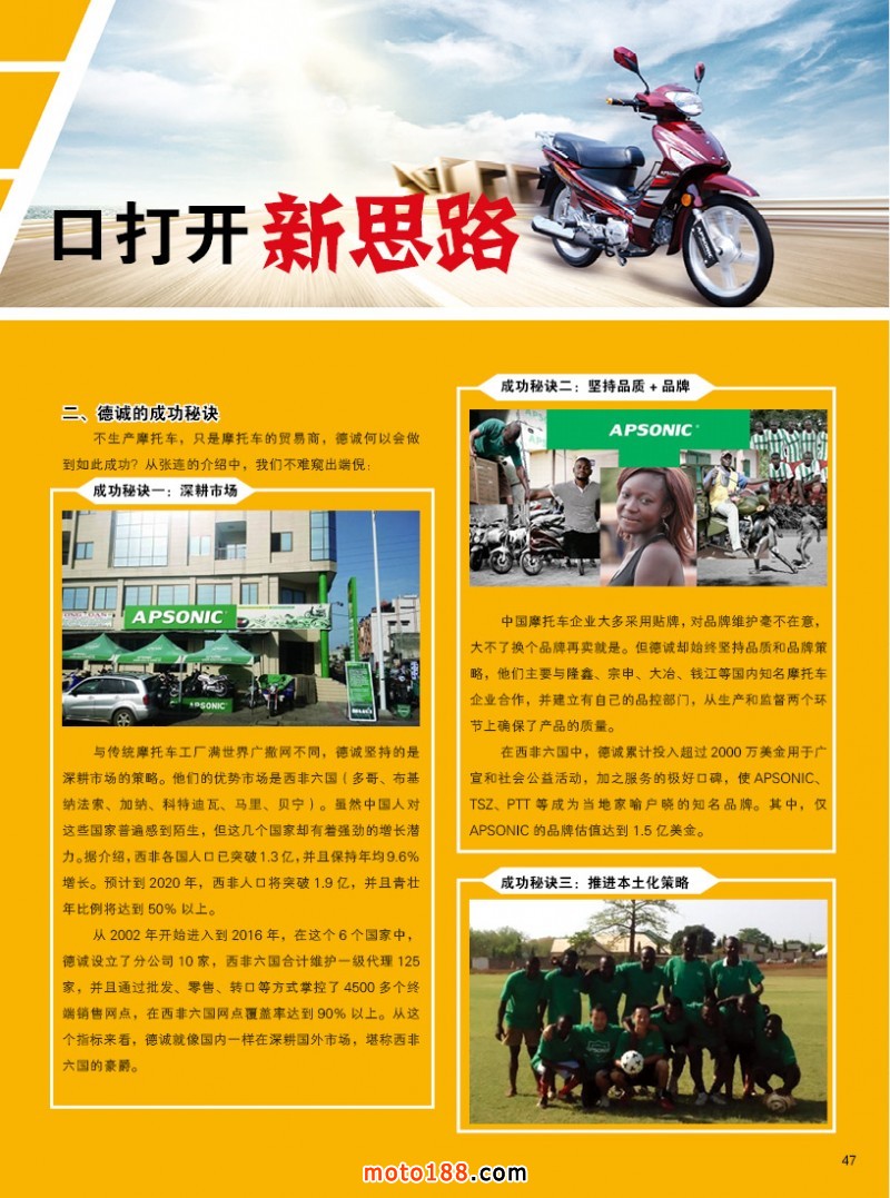 另外我們《摩托車與配件》雜志和微營銷新媒體都是行業獨一無二的,且運營模式貼近市場,為行業服務,效果明顯,我們希望有志于在新媒體行業有作為的企業和我們戰略合作,加快行業媒體發展的速度。具體什么形式合作,可詳談。