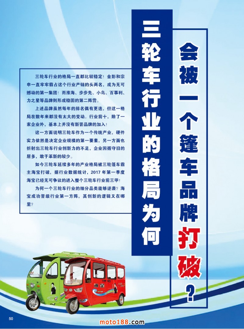 新媒體勢頭發展良好的同時,我們傳統媒體雜志也依然在砥礪前行,我們在會前和會后的這段時間已完成了對華東、西南市場進行了全面的走訪(注意后幾期的市場報道)。下半年我們將增加雜志的直投,擴大服務范圍,同時通過網絡將電子版做得更好,推送到每一個行業企業,兩個媒體一個主題:為摩配行業服務,雜志定位于品牌的長效宣傳,網媒提供適時交易服務,一個是志在長遠,一個是成在眼下,創新與傳統結合,比翼齊飛,雖是唯一,力求更好!