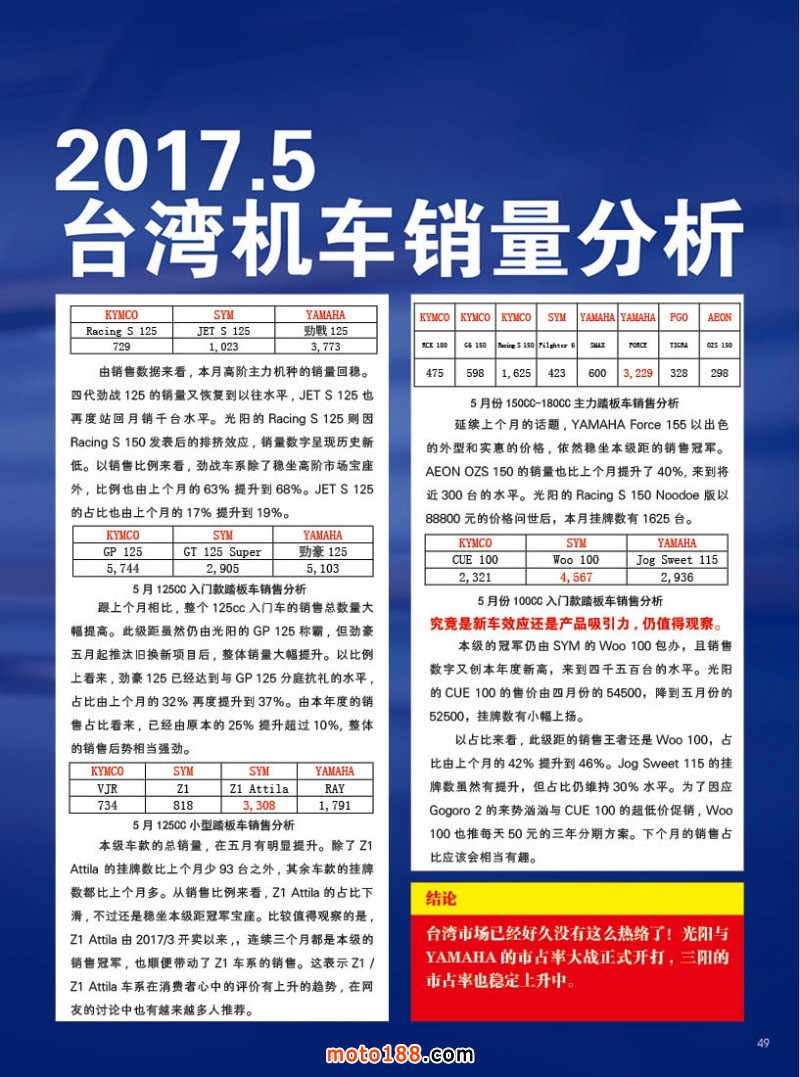 內49 數據會說話,2017.5臺灣機車銷量分析