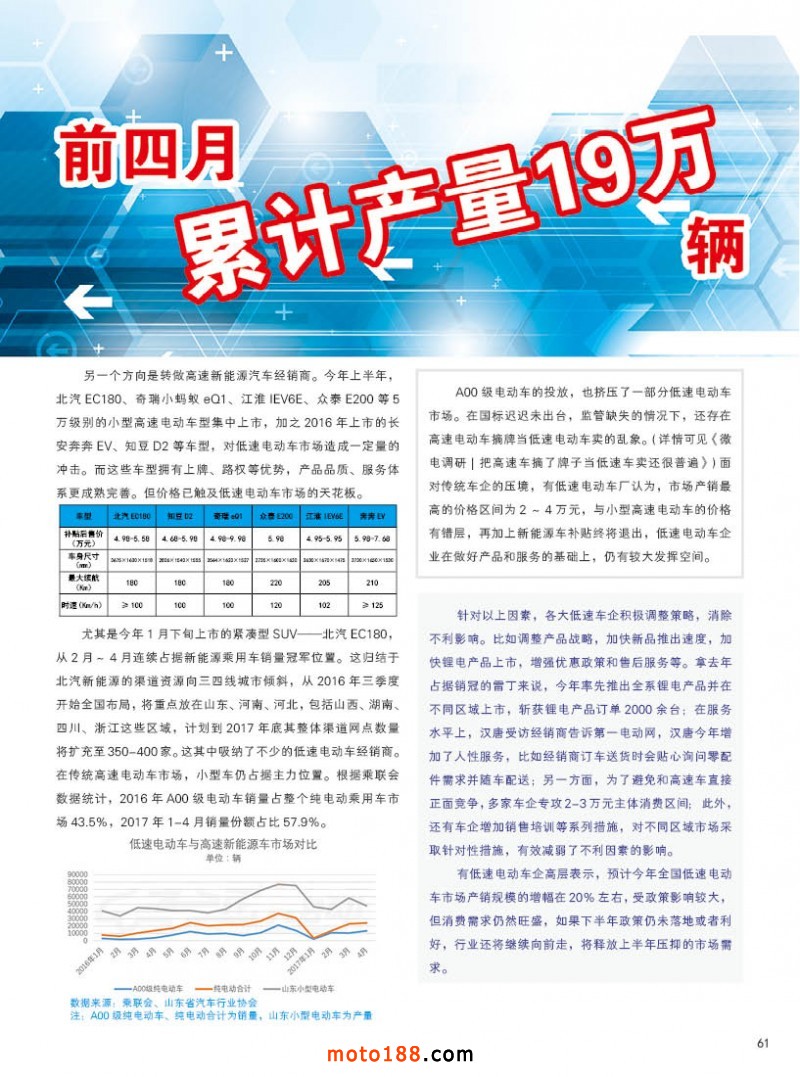 內61 山東低速電動車前四月累計產量19萬輛