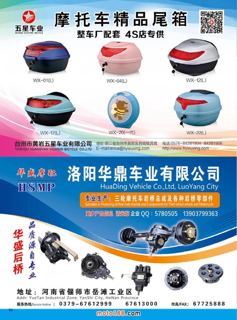 2017.7月《摩托車/電動車與配件》雜志,歡迎大家閱讀日期:2017-06-29 點擊:1162 查看原圖 全部展開![]() ![]() ![]() 內86 臺州市黃巖五星車業有限公司