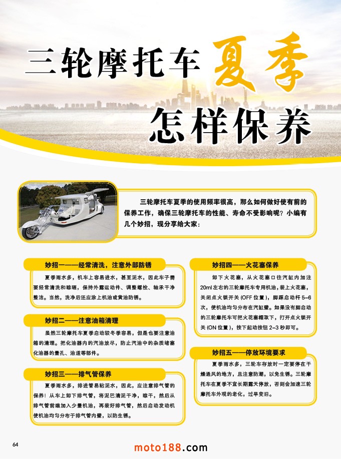 內64 三輪摩托車夏季怎樣保養和使用?