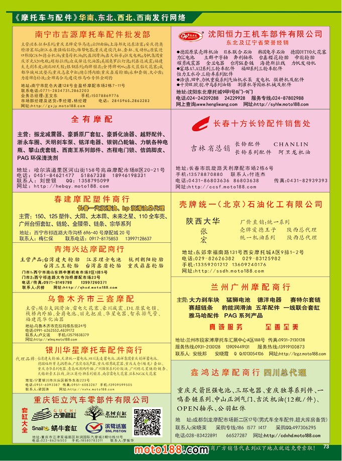 《外貿市場指南》發行對象:在廣州秋季全摩會首發,在明年春季全摩會繼續發行,全國所有的外貿企業、外商、全國所有的外貿摩配市場,目前需要在《中國摩配外貿市場指南》上做宣傳的企業十分踴躍,從計劃推出到正式操作不到一個月,已訂出一百五十個版面,我們爭取精心制作,確保準確性和適用性,將國內第一本外貿商業工具書做好。