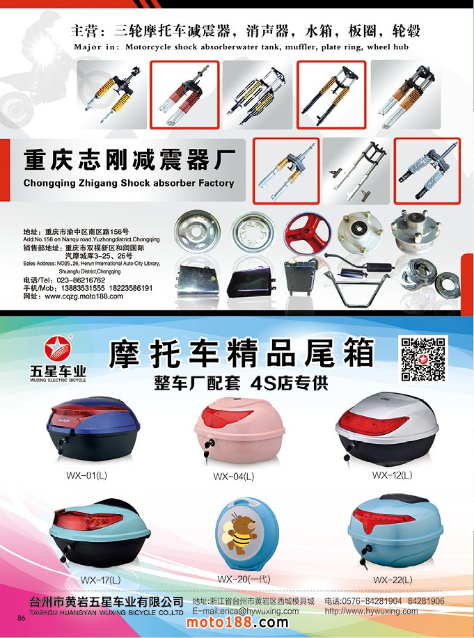 2017.8月《摩托車/電動車與配件》雜志,歡迎大家閱讀日期:2017-07-31 點擊:2384 查看原圖 全部展開![]() ![]() ![]() 內86 重慶志剛減震器廠