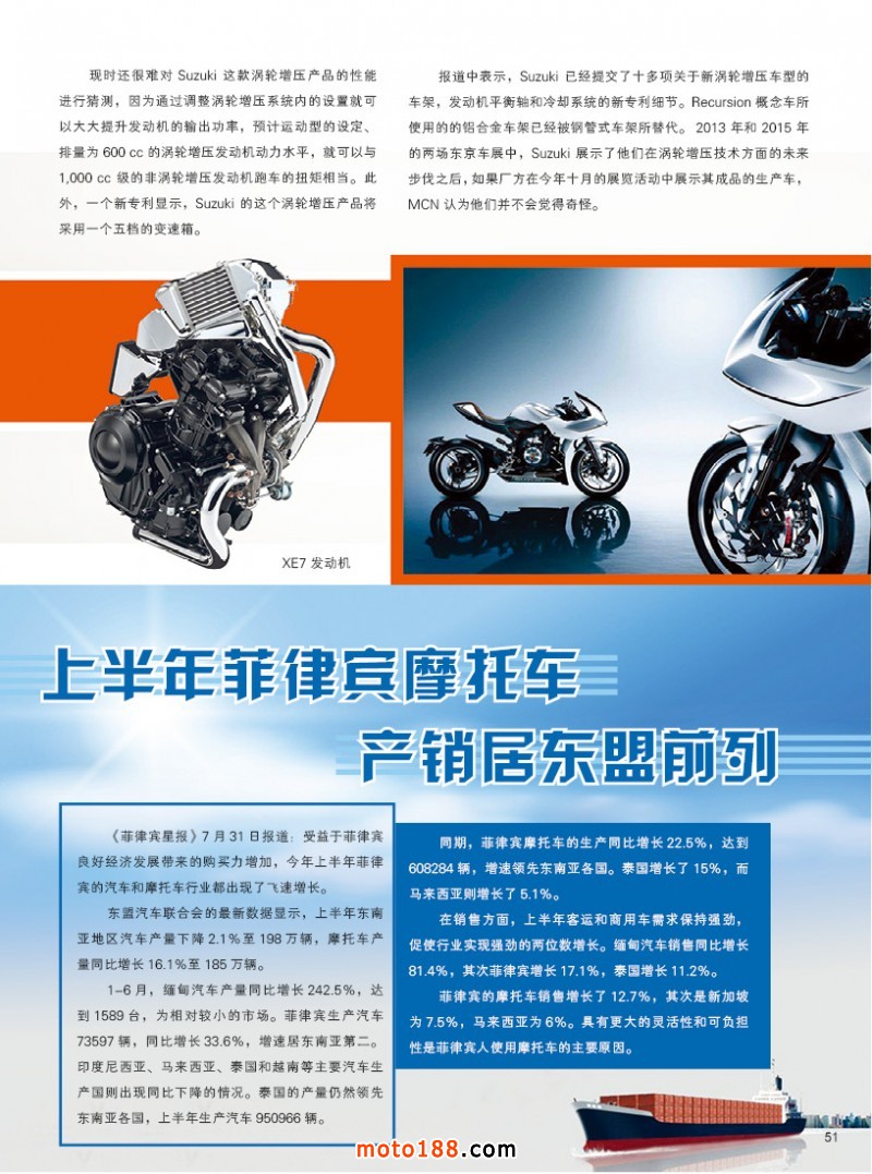 本期雜志出刊后,行業(yè)銷售季節(jié)也就開始,在今年不溫不火的摩配不景氣的狀況下,國內(nèi)摩配市場輝煌已離我們而去,面對內(nèi)銷雞肋般的市場,摩配的外貿(mào)出口也逐漸的失去國際市場的競爭力,取代而之的是印度摩托車,中國摩托車發(fā)展到今天有多種原因造成,不便一一而述。