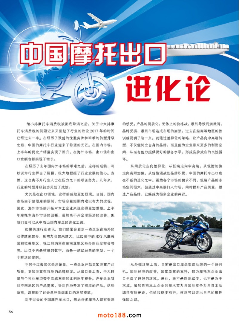 本期雜志出刊后,行業銷售季節也就開始,在今年不溫不火的摩配不景氣的狀況下,國內摩配市場輝煌已離我們而去,面對內銷雞肋般的市場,摩配的外貿出口也逐漸的失去國際市場的競爭力,取代而之的是印度摩托車,中國摩托車發展到今天有多種原因造成,不便一一而述。