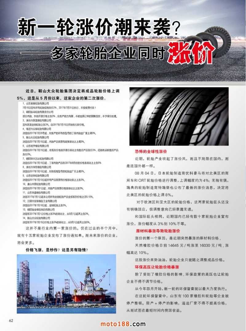 內(nèi)58 新一輪漲價(jià)潮來襲?—多家輪胎企業(yè)同時(shí)漲價(jià)