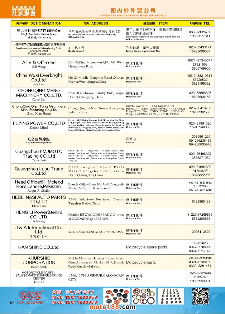 由《摩托車與配件》雜志社,在國內首次獨家推出的《中國摩托車配件外貿市場指南》工具書正式面世。這是一本專業定位于外貿企業的工具書,隨著一帶一路發展戰略的推進,更多企業走出國門,將產品銷往世界各地,本書收集了國內主要從事摩托車配件外貿的工廠、商家、國外部分駐華采購機構等資料匯總而成.