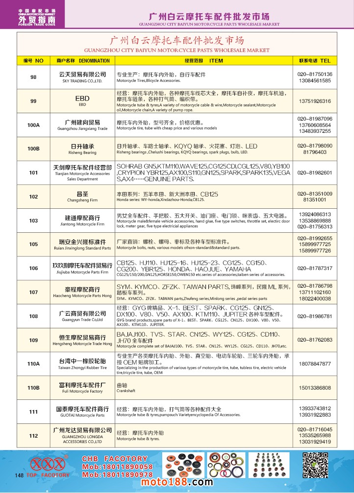 由《摩托車與配件》雜志社,在國內(nèi)首次獨家推出的《中國摩托車配件外貿(mào)市場指南》工具書正式面世。這是一本專業(yè)定位于外貿(mào)企業(yè)的工具書,隨著一帶一路發(fā)展戰(zhàn)略的推進,更多企業(yè)走出國門,將產(chǎn)品銷往世界各地,本書收集了國內(nèi)主要從事摩托車配件外貿(mào)的工廠、商家、國外部分駐華采購機構(gòu)等資料匯總而成.