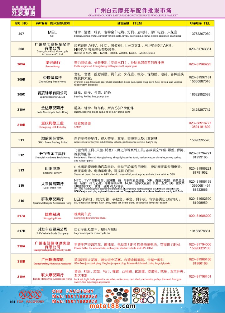 由《摩托車與配件》雜志社,在國內首次獨家推出的《中國摩托車配件外貿市場指南》工具書正式面世。這是一本專業定位于外貿企業的工具書,隨著一帶一路發展戰略的推進,更多企業走出國門,將產品銷往世界各地,本書收集了國內主要從事摩托車配件外貿的工廠、商家、國外部分駐華采購機構等資料匯總而成.