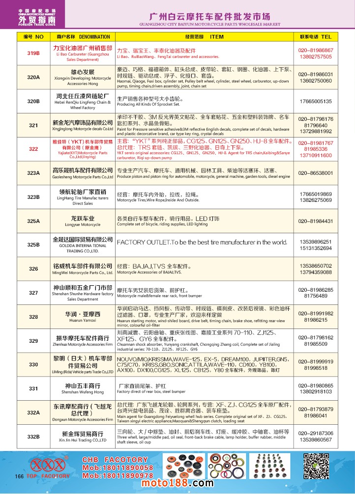 由《摩托車與配件》雜志社,在國內首次獨家推出的《中國摩托車配件外貿市場指南》工具書正式面世。這是一本專業定位于外貿企業的工具書,隨著一帶一路發展戰略的推進,更多企業走出國門,將產品銷往世界各地,本書收集了國內主要從事摩托車配件外貿的工廠、商家、國外部分駐華采購機構等資料匯總而成.