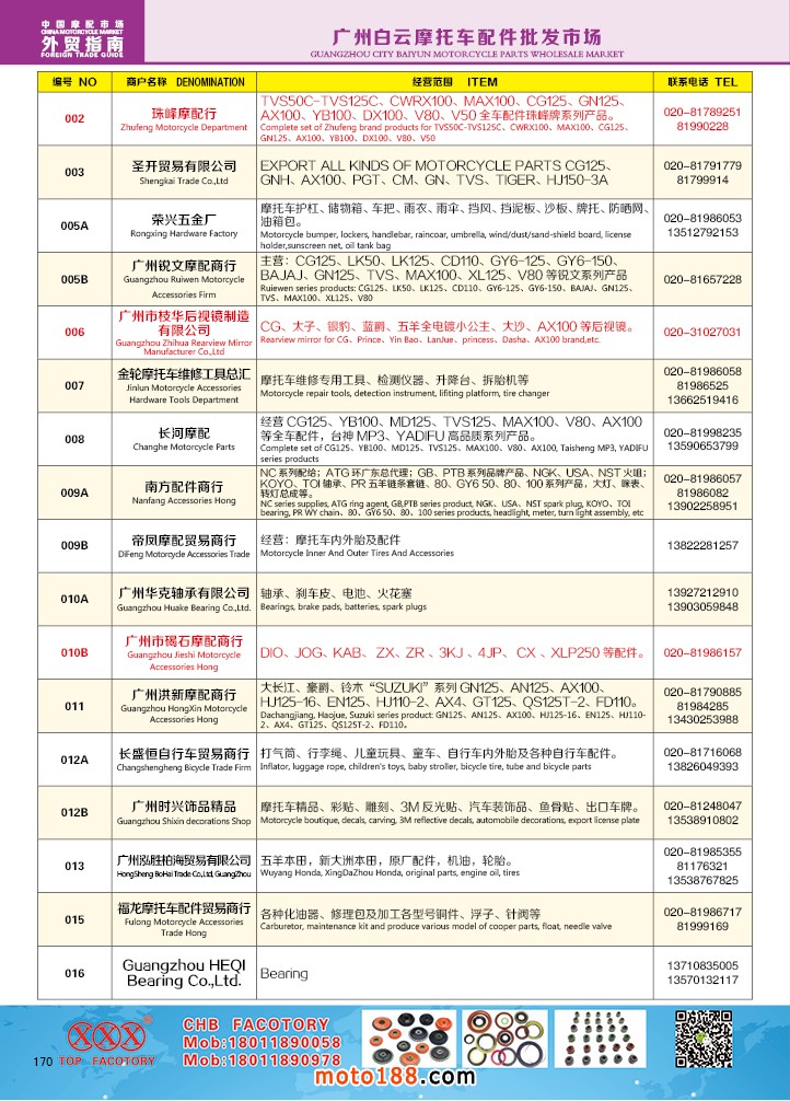 由《摩托車與配件》雜志社,在國內(nèi)首次獨家推出的《中國摩托車配件外貿(mào)市場指南》工具書正式面世。這是一本專業(yè)定位于外貿(mào)企業(yè)的工具書,隨著一帶一路發(fā)展戰(zhàn)略的推進,更多企業(yè)走出國門,將產(chǎn)品銷往世界各地,本書收集了國內(nèi)主要從事摩托車配件外貿(mào)的工廠、商家、國外部分駐華采購機構(gòu)等資料匯總而成.