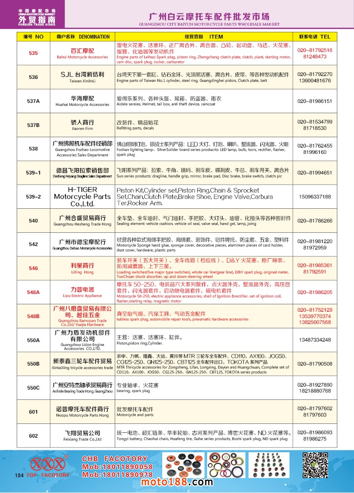 由《摩托車與配件》雜志社,在國內(nèi)首次獨家推出的《中國摩托車配件外貿(mào)市場指南》工具書正式面世。這是一本專業(yè)定位于外貿(mào)企業(yè)的工具書,隨著一帶一路發(fā)展戰(zhàn)略的推進,更多企業(yè)走出國門,將產(chǎn)品銷往世界各地,本書收集了國內(nèi)主要從事摩托車配件外貿(mào)的工廠、商家、國外部分駐華采購機構(gòu)等資料匯總而成.