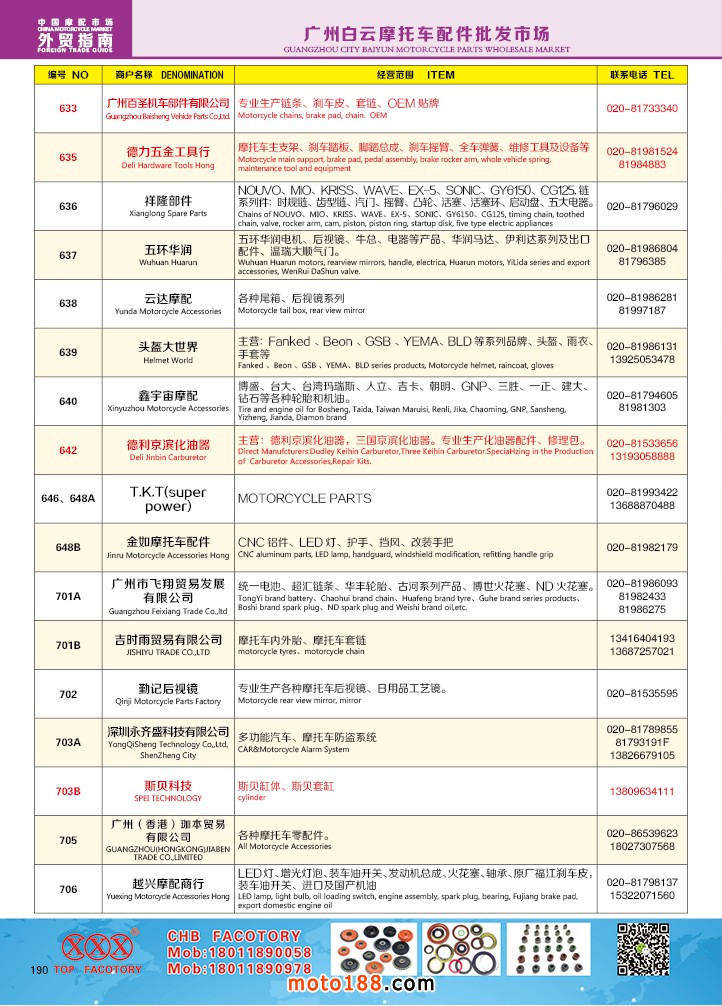 由《摩托車與配件》雜志社,在國內首次獨家推出的《中國摩托車配件外貿市場指南》工具書正式面世。這是一本專業定位于外貿企業的工具書,隨著一帶一路發展戰略的推進,更多企業走出國門,將產品銷往世界各地,本書收集了國內主要從事摩托車配件外貿的工廠、商家、國外部分駐華采購機構等資料匯總而成.