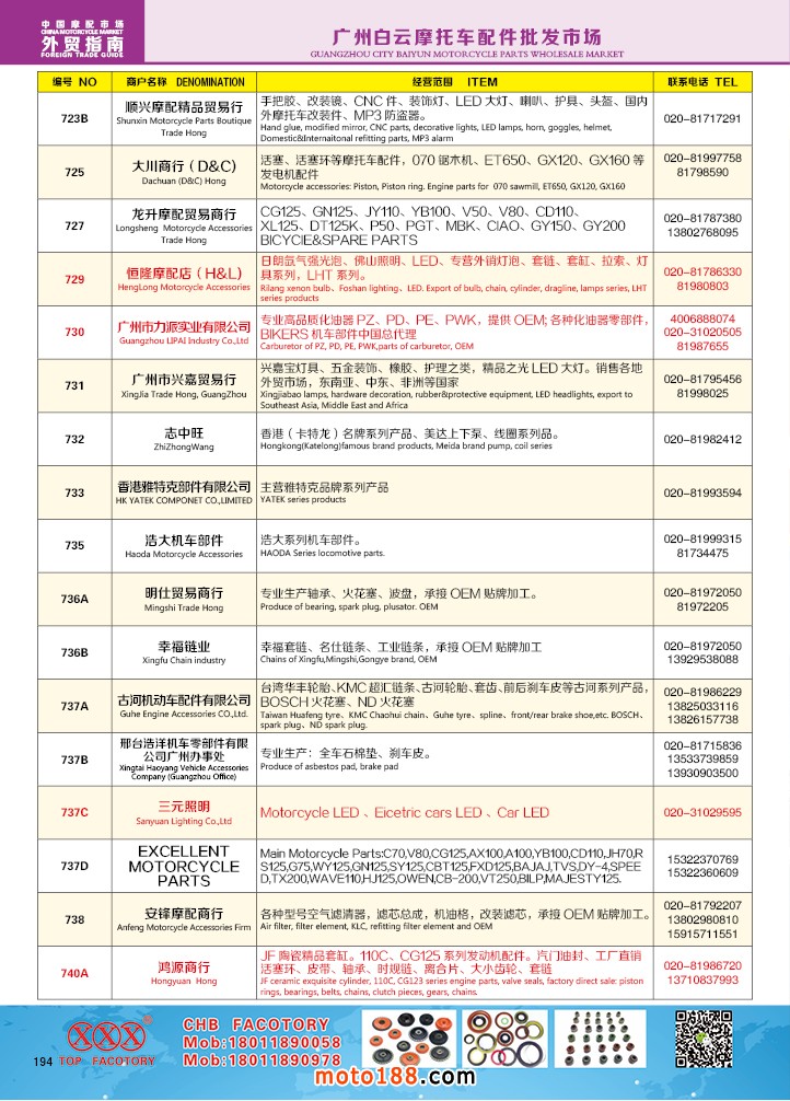 由《摩托車與配件》雜志社,在國內首次獨家推出的《中國摩托車配件外貿市場指南》工具書正式面世。這是一本專業定位于外貿企業的工具書,隨著一帶一路發展戰略的推進,更多企業走出國門,將產品銷往世界各地,本書收集了國內主要從事摩托車配件外貿的工廠、商家、國外部分駐華采購機構等資料匯總而成.