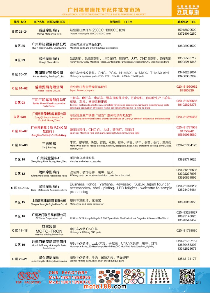 由《摩托車與配件》雜志社,在國內首次獨家推出的《中國摩托車配件外貿市場指南》工具書正式面世。這是一本專業定位于外貿企業的工具書,隨著一帶一路發展戰略的推進,更多企業走出國門,將產品銷往世界各地,本書收集了國內主要從事摩托車配件外貿的工廠、商家、國外部分駐華采購機構等資料匯總而成.