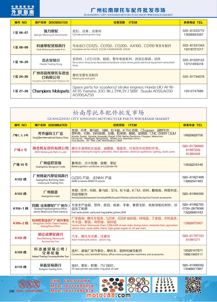 由《摩托車與配件》雜志社,在國內首次獨家推出的《中國摩托車配件外貿市場指南》工具書正式面世。這是一本專業定位于外貿企業的工具書,隨著一帶一路發展戰略的推進,更多企業走出國門,將產品銷往世界各地,本書收集了國內主要從事摩托車配件外貿的工廠、商家、國外部分駐華采購機構等資料匯總而成.