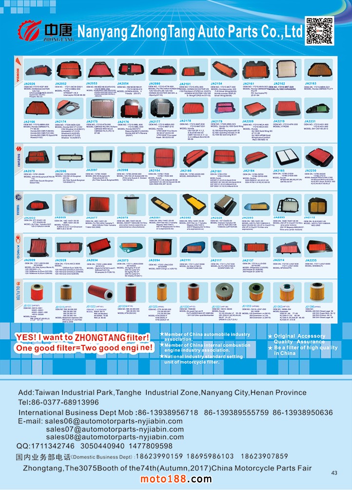 由《摩托車與配件》雜志社,在國(guó)內(nèi)首次獨(dú)家推出的《中國(guó)摩托車配件外貿(mào)市場(chǎng)指南》工具書正式面世。這是一本專業(yè)定位于外貿(mào)企業(yè)的工具書,隨著一帶一路發(fā)展戰(zhàn)略的推進(jìn),更多企業(yè)走出國(guó)門,將產(chǎn)品銷往世界各地,本書收集了國(guó)內(nèi)主要從事摩托車配件外貿(mào)的工廠、商家、國(guó)外部分駐華采購(gòu)機(jī)構(gòu)等資料匯總而成.