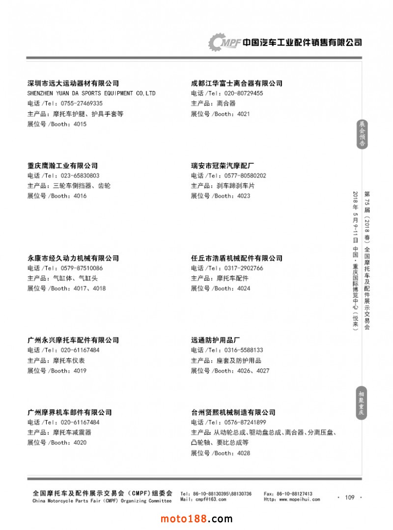 內109 第74屆(2017秋)全國摩托車及配件展示交易會-廣州站參展企業名錄