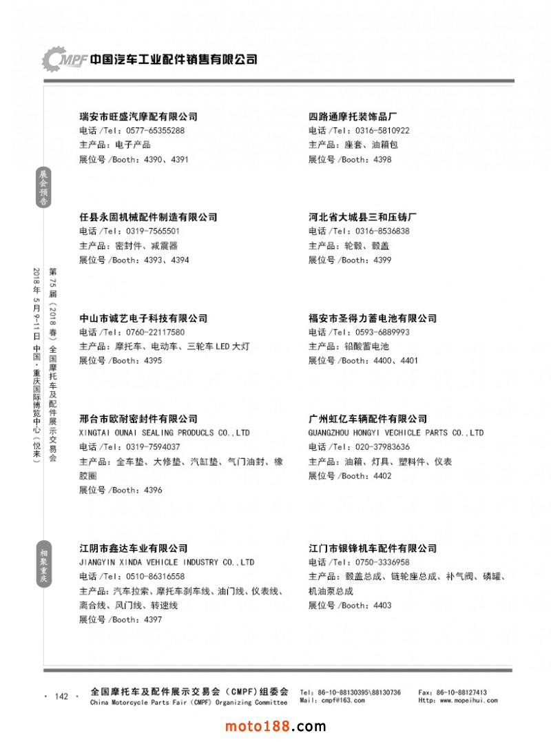 內142 第74屆(2017秋)全國摩托車及配件展示交易會-廣州站參展企業名錄