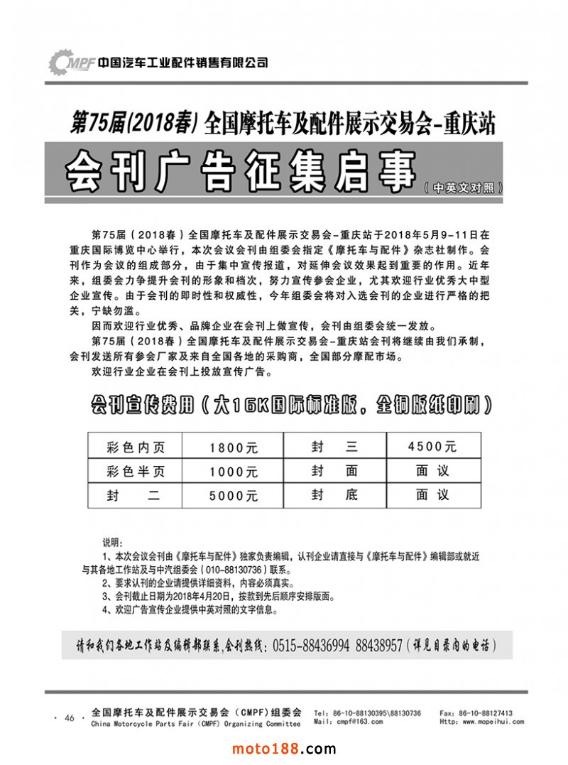 內46 第75屆(2018春)全國摩托車及配件展示交易會-重慶站會刊征集啟事