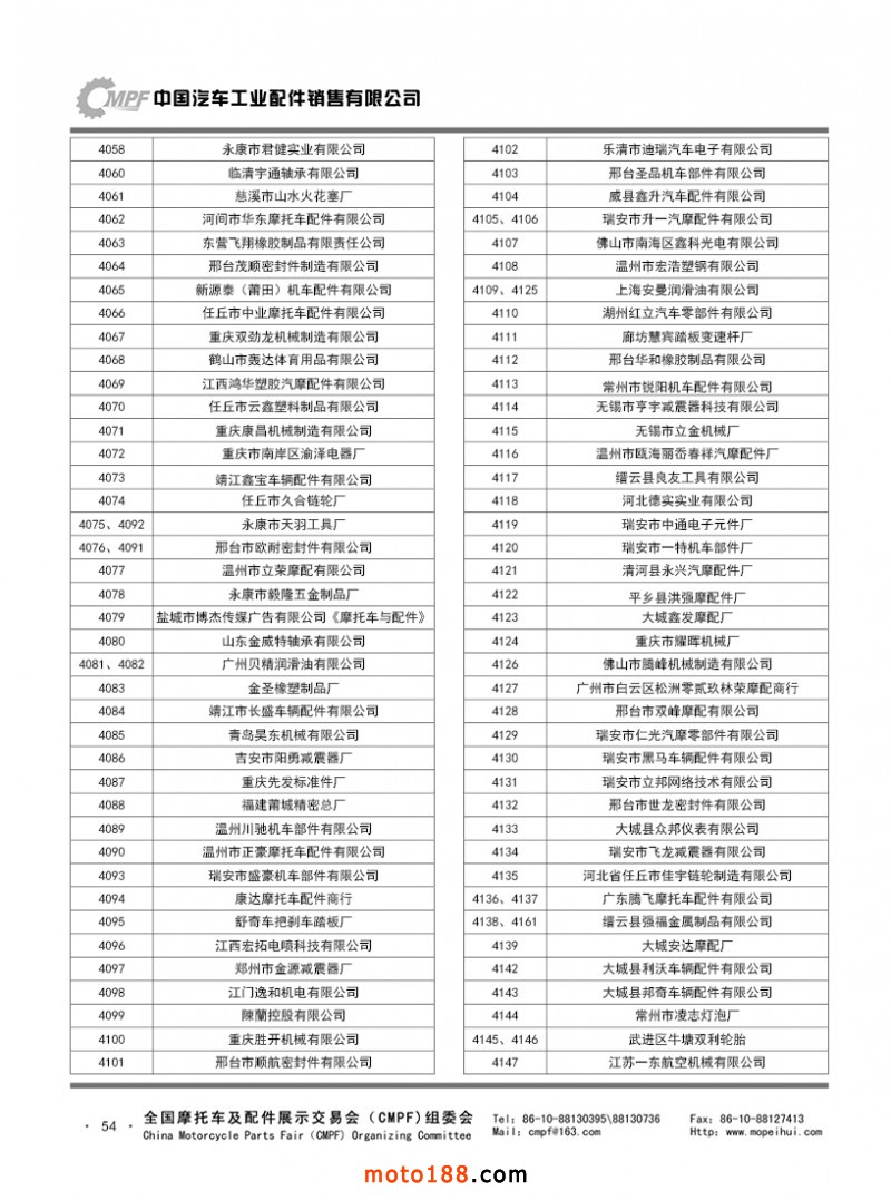 內(nèi)54 第74屆(2017秋)全國(guó)摩托車及配件展示交易會(huì)-廣州站參展單位名錄