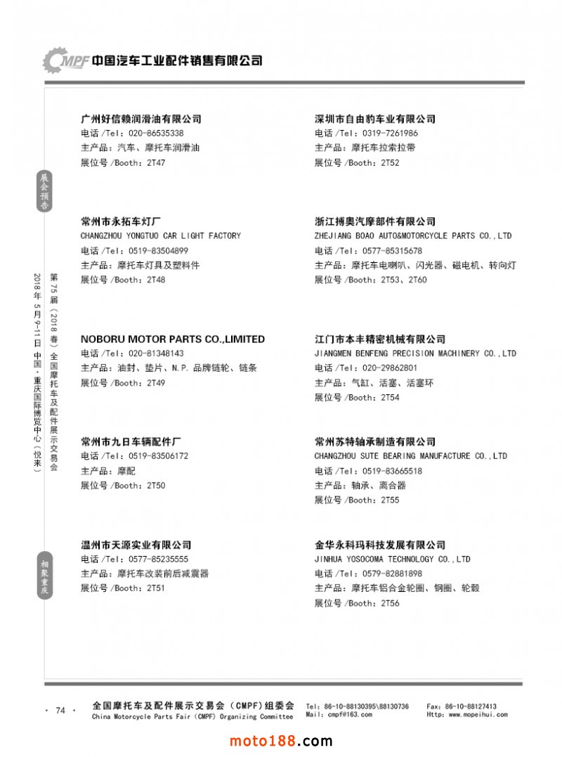 內(nèi)74 第74屆(2017秋)全國(guó)摩托車及配件展示交易會(huì)-廣州站參展企業(yè)名錄