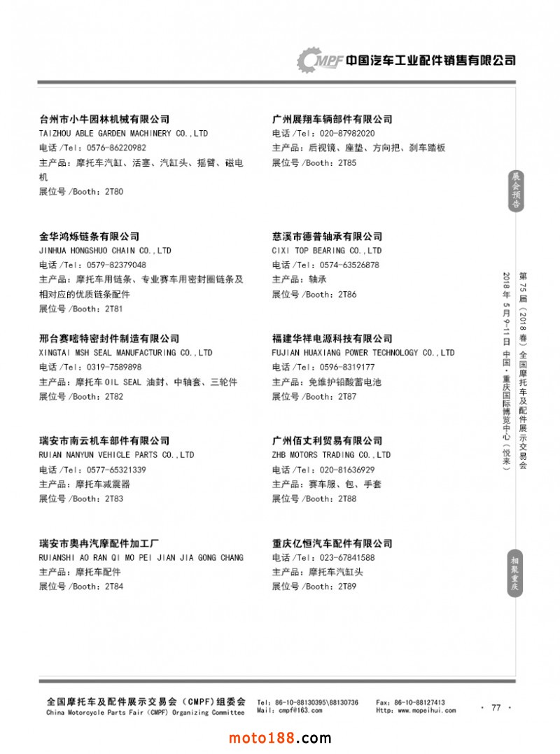 內77 第74屆(2017秋)全國摩托車及配件展示交易會-廣州站參展企業名錄