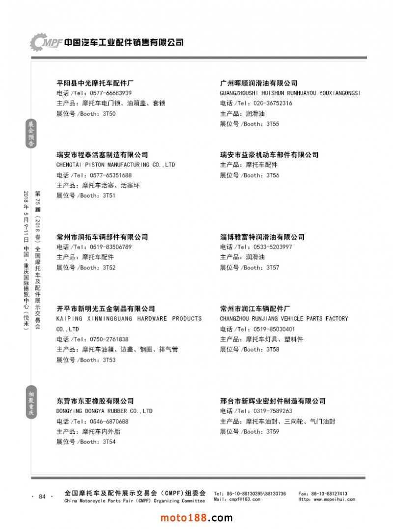 內84 第74屆(2017秋)全國摩托車及配件展示交易會-廣州站參展企業名錄