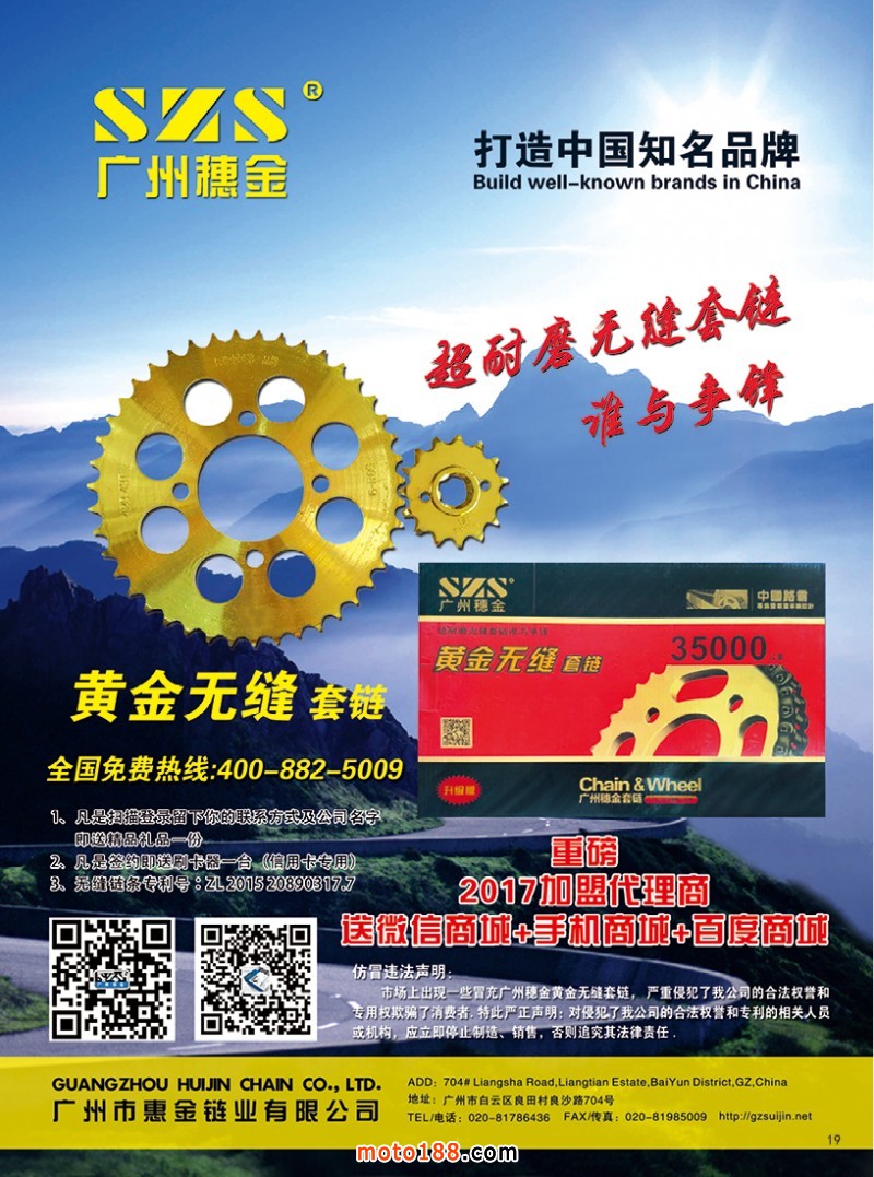 國內首本中英文雙語《中國摩配外貿市場指南》,為從事外貿的企業提供了工具。這本書在廣州秋季全摩會上首發。還將參加明年的江門和重慶春季全摩會。歡迎行業朋友帶上名片或者手機掃二維碼,到4079展位來領取《中國摩配外貿市場指南》和《摩托車與配件》11期雜志。