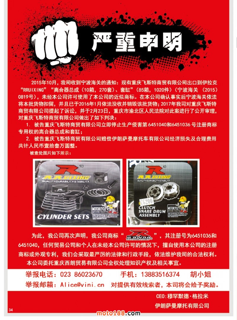 國內首本中英文雙語《中國摩配外貿市場指南》,為從事外貿的企業提供了工具。這本書在廣州秋季全摩會上首發。還將參加明年的江門和重慶春季全摩會。歡迎行業朋友帶上名片或者手機掃二維碼,到4079展位來領取《中國摩配外貿市場指南》和《摩托車與配件》11期雜志。