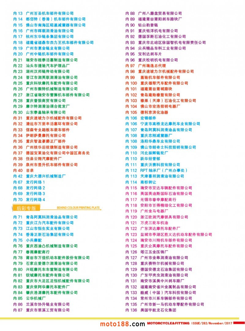 國內(nèi)首本中英文雙語《中國摩配外貿(mào)市場指南》,為從事外貿(mào)的企業(yè)提供了工具。這本書在廣州秋季全摩會上首發(fā)。還將參加明年的江門和重慶春季全摩會。歡迎行業(yè)朋友帶上名片或者手機掃二維碼,到4079展位來領(lǐng)取《中國摩配外貿(mào)市場指南》和《摩托車與配件》11期雜志。