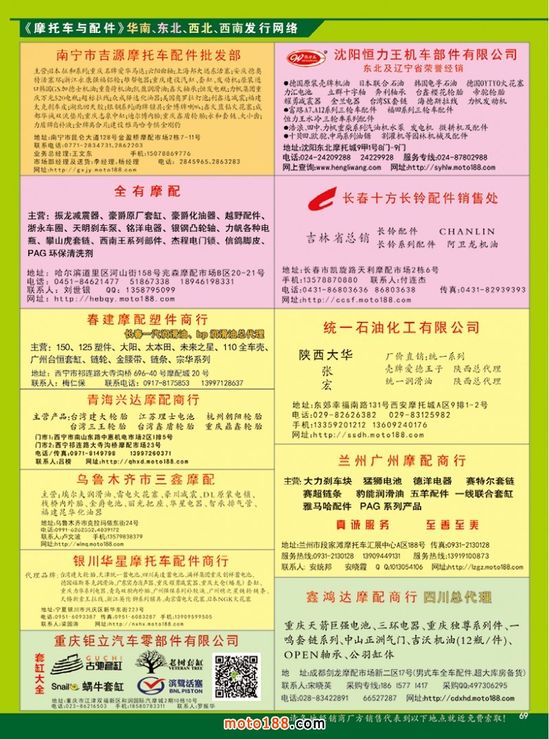 國內首本中英文雙語《中國摩配外貿市場指南》,為從事外貿的企業提供了工具。這本書在廣州秋季全摩會上首發。還將參加明年的江門和重慶春季全摩會。歡迎行業朋友帶上名片或者手機掃二維碼,到4079展位來領取《中國摩配外貿市場指南》和《摩托車與配件》11期雜志。